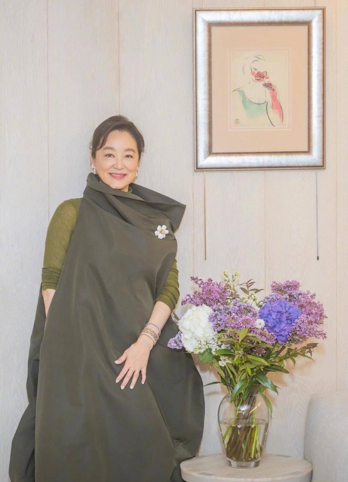 林青霞的“敢穿”从来不是盲目追逐潮流。这次的“棉被装”其实大有讲究,深橄榄色衬托肤色白皙,宽松版型遮住身材短板,配上简约首饰反而有种高级的慵懒感。时尚博主解读:“这才是真正的穿搭智慧——不被年龄绑架,不被风格定义。”回顾她的时尚史,从八十年代的垫肩西装到九十年代的复古旗袍,再到如今的混搭风,每一步都走在时代前面。就像她在书里写的:“衣服是穿给自己看的,舒服比好看更重要。”这种态度也影响了很多同龄人,有粉丝留言:“看了青霞姐的照片,我终于敢穿年轻时喜欢的粉色了。”如今的林青霞,活成了无数人理想中的老年模样:有自己的事业(去年刚办了个人摄影展),有三五好友(时常和施南生、张曼玉小聚),有热爱的生活(坚持写毛笔字、练瑜伽)。她不回避衰老,却也不向岁月低头。生日动态下有条高赞评论:“真正的女神不是永远年轻,而是永远活得热气腾腾。”或许正是这份对生活的热爱,让71岁的林青霞依旧眼里有光,让“裹棉被出镜”也能美得如此惊艳。正如她常说的:“年龄只是数字,我的人生剧本,永远自己执笔。”